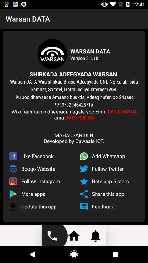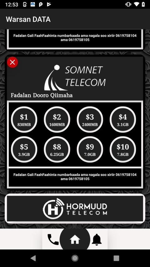 Adeega Warsan DATA waa adeeg aad ka Dalban kartid Data raqiis ah sida SOMTEL,somnet , HORMUUD
