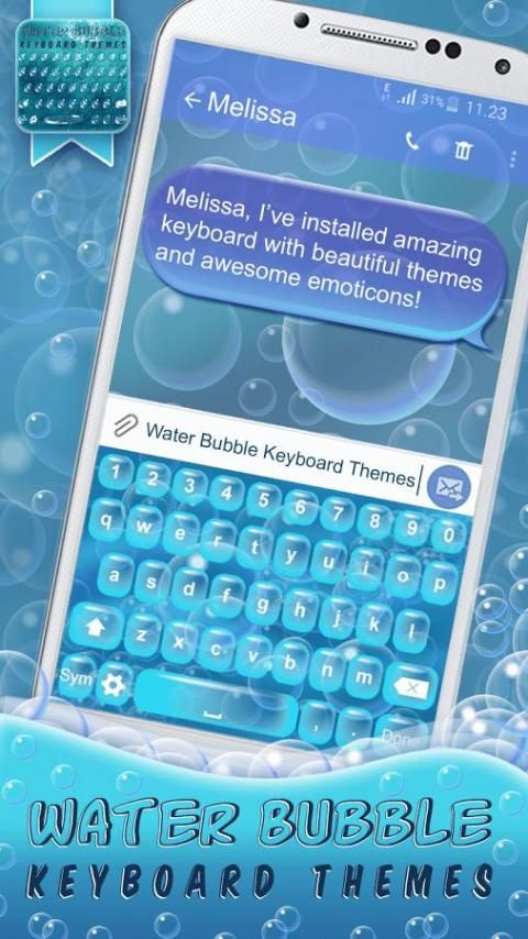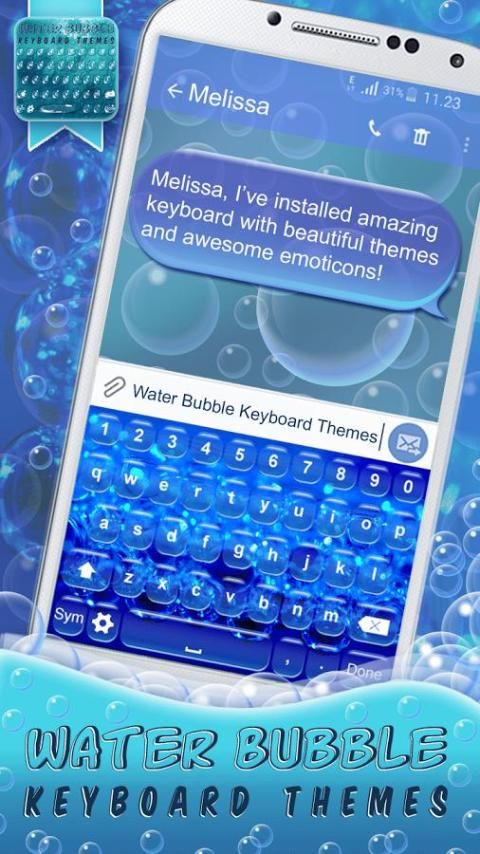 Fantastic “water bubble” keyboard themes with emojis can be yours today free of charge!!! How???!!! By downloading our collection of fancy keyboard themes for Android. We can guarantee to you and all your friends great fun and perfect look of your keyboard background! Step into the glowing world of colorful bubbles keyboard designs and don't miss this opportunity to beautify your phone display with amazing shiny bubbles. A great number of bubble “emoji themes” is waiting for you in our latest keyboard app for AndroidTM. Get this water color keyboard free of charge because it will make your phone look special.▶ Water Bubble Keyboard Themes ◀ just for you ;)