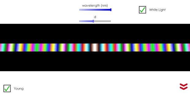 इस एप्लिकेशन को एक दो बिंदु स्रोत हस्तक्षेप पैटर्न के साथ ही प्रकाश के साथ थॉमस यंग की डबल काट प्रयोग simulates। दो स्रोतों में ले जाया जा सकता है, आवृत्ति समायोजित किया जा सकता है, और सिमुलेशन नोडल लाइनों, 2 डी या 3 डी पैटर्न प्रदर्शित कर सकते हैं।