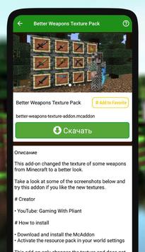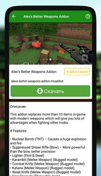 Weapon mod for MCPE this is a great collection of top mods and addons (3D Weapons Pack, Jimbos Moderns Weapons Pack, More Weapons Mod, Better Weapons Pack, Christmas Weapon, Halo Weapons, Nuclear Weapons mod, Fortnite Addon and others mod for free). Also remember to use top Addons for minecraft, we recommend: furniture, weapons mod, lucky blocks, capes for minecraft, armor addon. MODS works with MCPE.