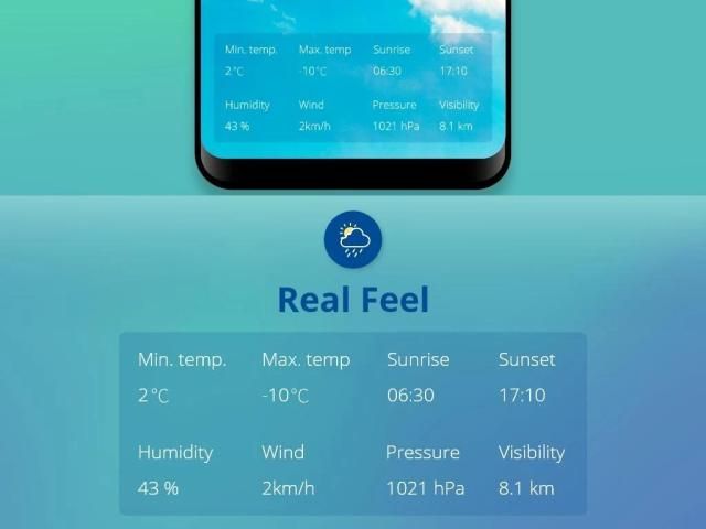 It is almost like you look out of the window - The application changes based on the time of the day, current location and weather condition to show you the current weather.