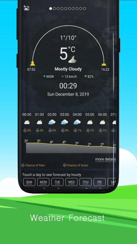 - घंटे और दैनिक मौसम का प्रबंधन और देखने के लिए चार्ट