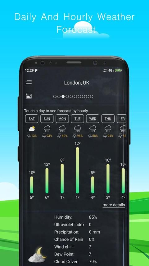 The app give you a very simple user interface, easy to see all weather update info by a touch.