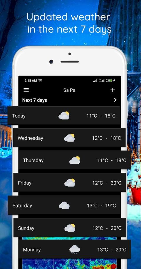 ● Not only today weather forecast WeatherLike provides 7 days ahead weather forecasts to ensure that you’re prepared for your plan