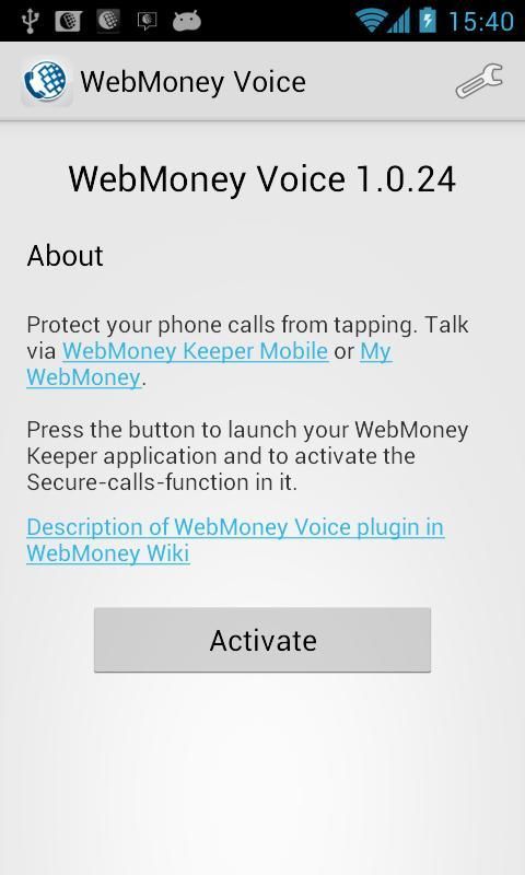 वेबमनी वॉयस अपने फोन talks`confidentiality बचाता है। आवेदन कीपर के अपने मोबाइल संस्करण के लिए एक सुरक्षित-कॉल-funtion के लिए कहते हैं।