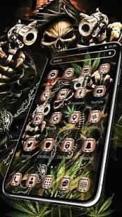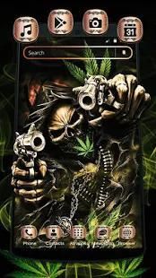 Green Ghost Gun Launcher Theme is different from a lot of the other themes available as it gives its user a fine experience of exclusive Rasta Weed background and shooter ghosts on his/her phone. The ghost also adds up to the intensity of the theme.