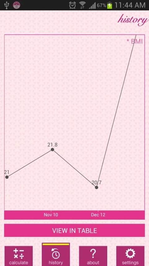 4. You can keep the history of your weight and BMI in this app. There is a graphical representation over time of your weight and BMI.