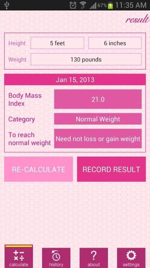2. The app will show whether you are underweight, of normal weight, overweight, obese or grossly obese.