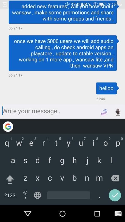 To ensure smooth and uninterrupted chatting experience we update wessenger regularly you can notice improvements and changes in app. Ask your friends to use Wessenger for support and feedback let us know what you have to say at support@wansaw.com