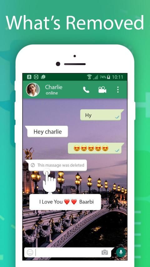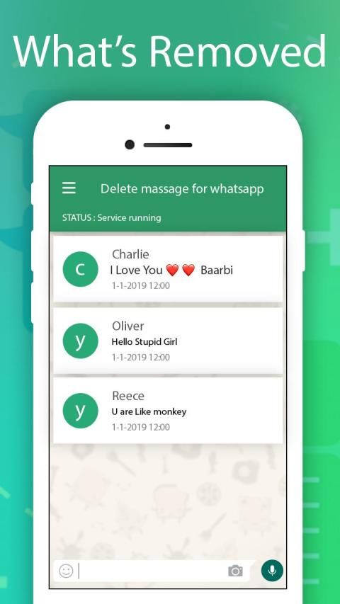 Whats Deleted एक व्हाट्सएप संदेश विरोधी हटाने वाला उपकरण है। आप किसी भी समय हटाए गए संदेश को देख सकते हैं और हटाए गए संदेश रिकॉर्ड को बचा सकते हैं। आप चैट विंडो में हटाए गए संदेशों को देख सकते हैं, या व्हाट्सएप पर हटाए गए संदेशों को देख सकते हैं।