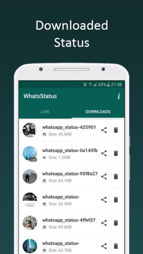 - Easy to share and repost with friends video or image files of WhatsApp Status
