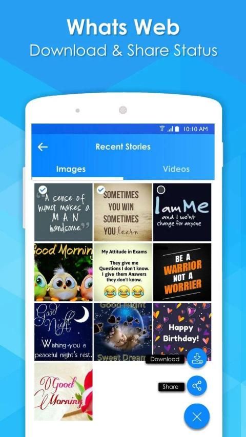 आप आसानी से अपने दोस्तों की स्थिति देख सकते हैं, डाउनलोड कर सकते हैं और साझा कर सकते हैं। बस वांछित स्थिति / कहानी, ओपन स्टेटस सेवर की जाँच करें, देखने के लिए किसी भी छवि या वीडियो पर क्लिक करें ... सहेजें बटन पर क्लिक करें। मल्टी सेव, डिलीट, री-पोस्ट / शेयर, डिलीट, ईजी एंड फास्ट सेविंग शामिल करें,