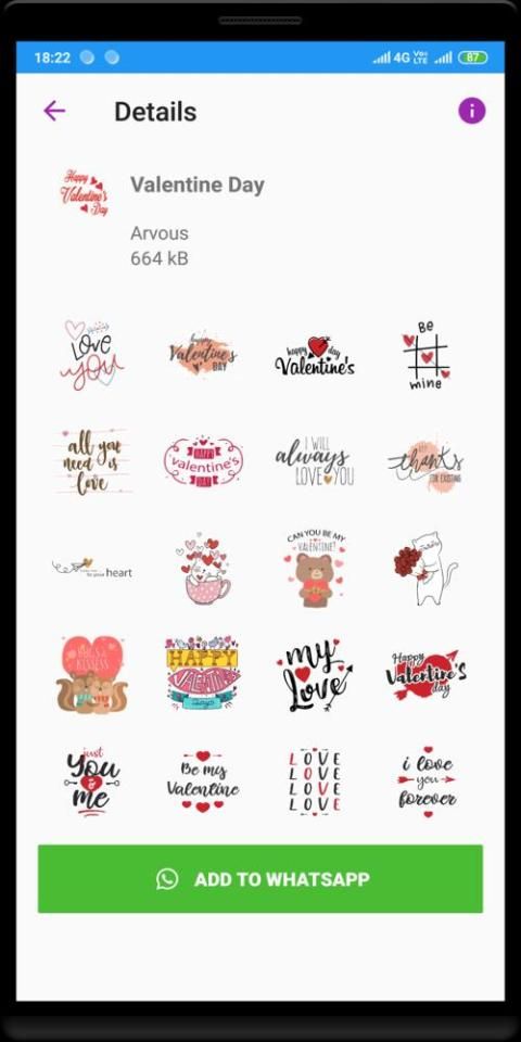 एप्लिकेशन को डाउनलोड करने के बाद, उस श्रेणी का चयन करें जिसे आप पसंद करते थे और "ADD TO WHATSAPP" बटन पर क्लिक करें, अब आपका स्टिकर व्हाट्स ऐप में उपयोग करने के लिए उपलब्ध है। तो अपने वेलेंटाइन दिवस का आनंद लें। :)
