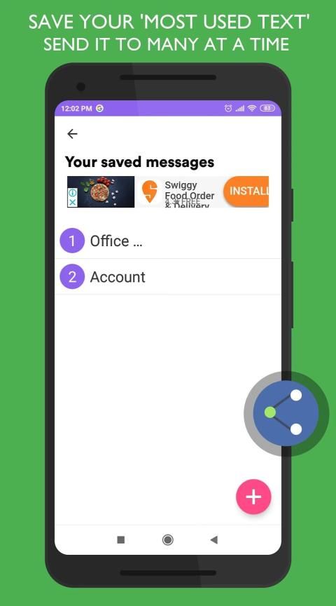 Tired Of Sending The Same Message Again And Again. Save Your Most Used Text Like Bank Details, Addresses Or Any Info And Forward It To A Whatsapp Group Or Contact With A Single Tap (Group Or One).