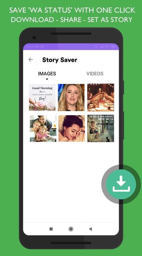 स्थिति या कहानी पर टैप करें और आप डाउनलोड, पढ़ सकते हैं या अपनी खुद की स्थिति विकल्प के रूप में सेट कर सकते हैं। स्थिति आपकी गैलरी में सहेज ली जाएगी या आपके डिवाइस पर अलग फ़ोल्डर
