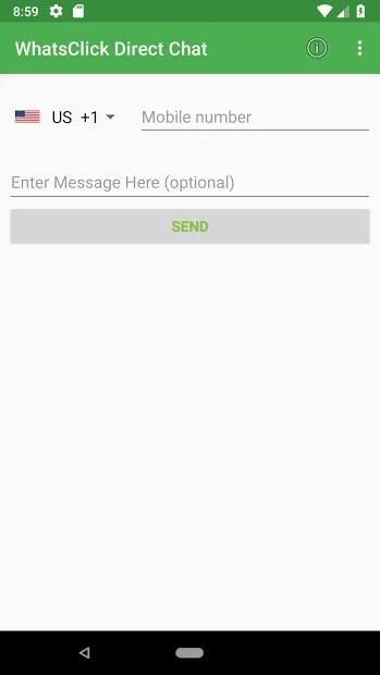 WhatsClick app allows you to begin a chat with someone without having their phone number saved in your phone's address book. As long as you know this person’s phone number, you can start direct chat using WhatsApp without saving contact number.