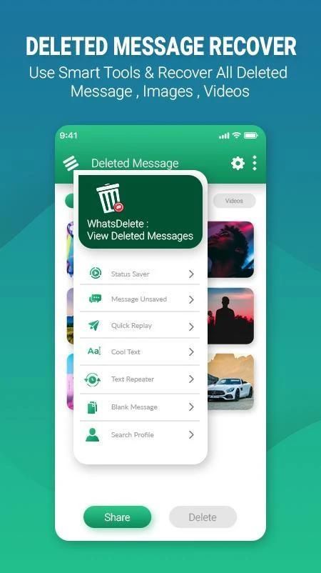 In the event that you need to see erased messages of whats application that have been erased by the sender, introduce this Whatsdelete: View Deleted Messages and Media application and it will educate you by a notice at whatever point any message or media record gets erased from whats application. This Whatsdelete: View Deleted Messages and Media application causes you to watch warnings of Whats App and encourages you to recognize erased messages of whats application.