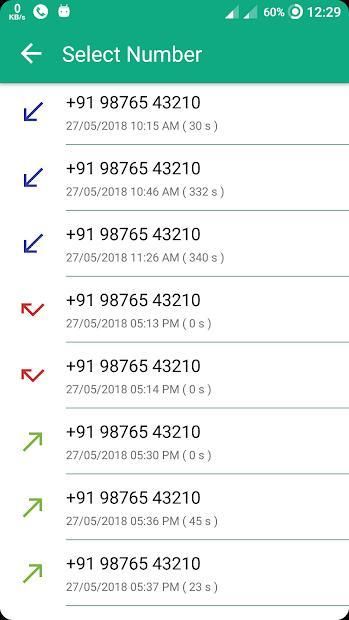 ✔️ We also give feature to easy select contact from your call history list.