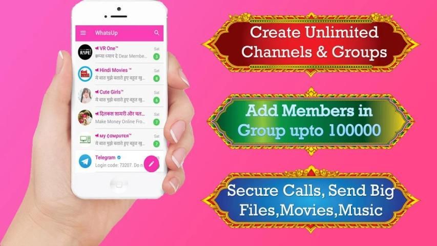 Channels: You Can Create Your Own Channel And Broadcast Your Text, Photos, Audio, Video, And Files To Your Subscribers. No Member limit in Channels.