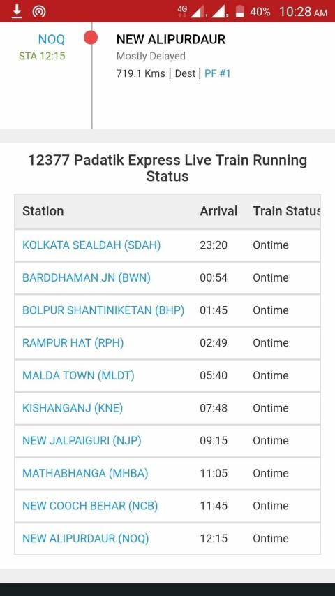 train live running status on mobile