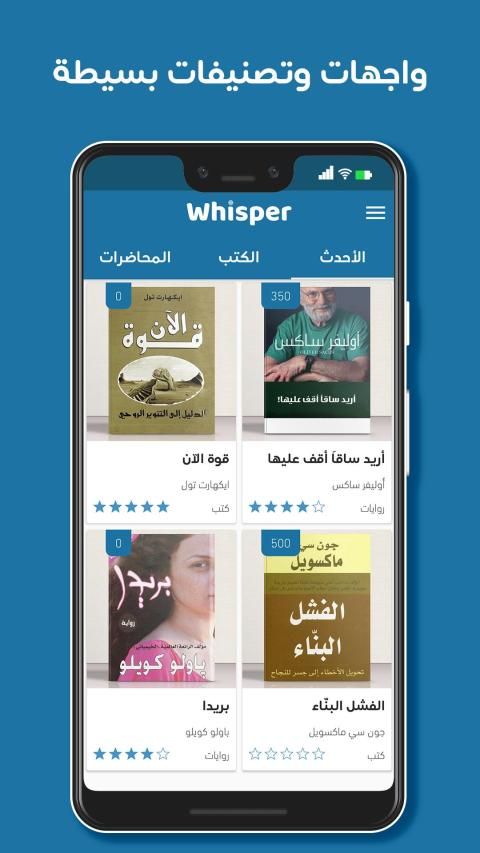 تطبيق whisper منصة ثقافية تتيح لمحبي القراءة والمتعطشين للمعرفة من سماع كتب وروايات عربية وعالمية ومحاضرات جامعية أكاديمية علمية صوتية.