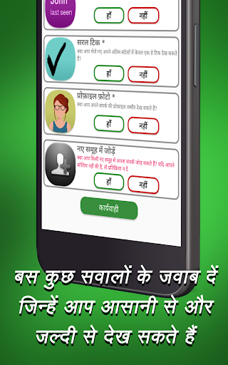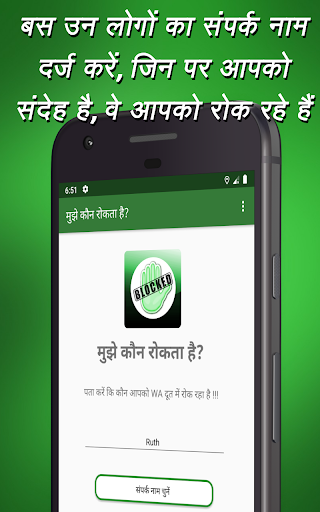 क्या आप मानते हैं कि आपका कोई दोस्त आपको व्हाट्सएप पर रोक रहा है? क्या आप जानना चाहते हैं कि क्या आपकी प्रेमिका या प्रेमी आपको रोक रहे हैं? यह ऐप आपके लिए एक सरल और त्वरित तरीका है कि कोई व्यक्ति व्हाट्सएप पर आपसे बच रहा है या नहीं।