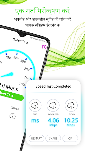 ☑ इंटरनेट स्पीड टेस्ट: अपने मोबाइल डिवाइस पर सक्रिय कनेक्शन प्रकार की अपलोड और डाउनलोड गति की जांच करने के लिए 2G / 3G / 4G / 4G LTE / 5G टाइप मोबाइल डेटा और वाईफाई कनेक्शन पर स्पीड टेस्ट करें।