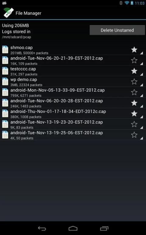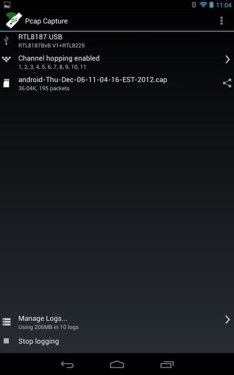 Wi-Fi PCAP कैद एक बाहरी USB RTL8187 Wi-Fi कार्ड का उपयोग करता है और एक कस्टम ROM या रूट अधिकार की आवश्यकता नहीं है.