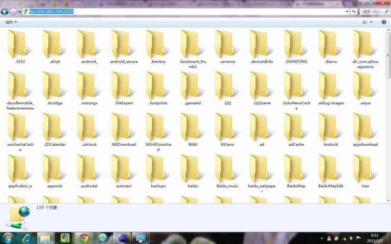3.Copy और अपने FTP क्लाइंट या Windows फ़ाइल Explorer में देखा यूआरएल पेस्ट, तो आप स्कैन और अपने कंप्यूटर पर अपने फोन में प्रबंधक फ़ाइलों.