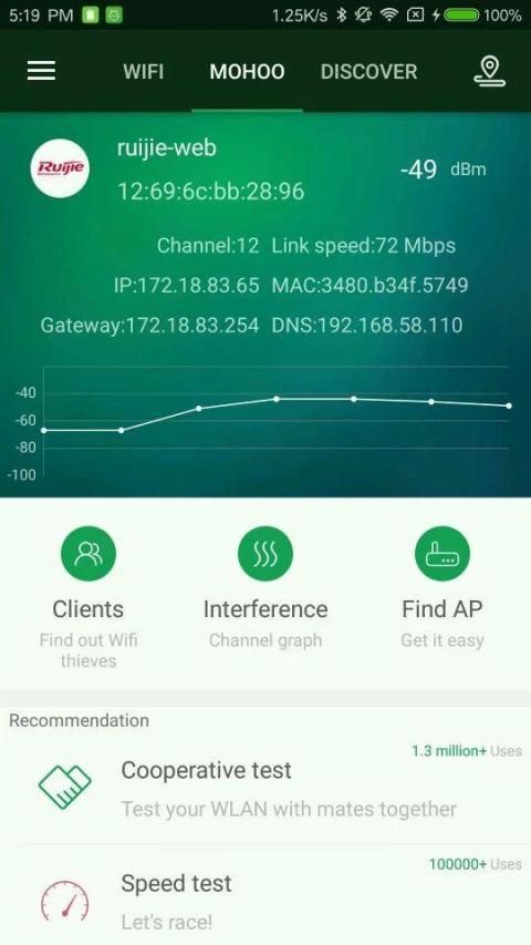 Moho आप उच्च स्थिरता के लिए हस्तक्षेप और सिग्नल की शक्ति जानने में मदद करता। मजबूत वाईफ़ाई संकेत आप के लिए तैयार हैं।