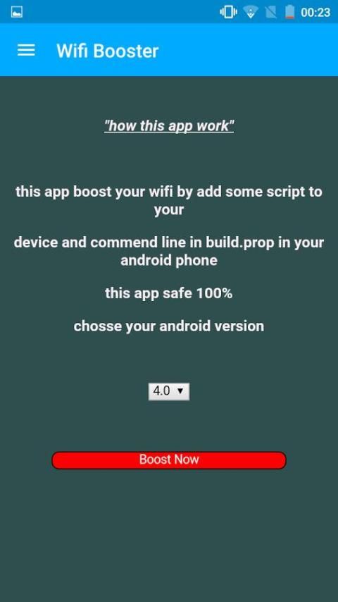 सब क्या आप अपने वाईफाई सिग्नल को बढ़ावा देने की जरूरत है app खुला और अपने Android संस्करण का चयन और अब बढ़ावा देने में क्लिक करें