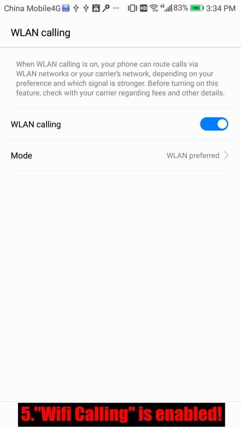 5. "वाईफ़ाई कॉलिंग" सक्षम किया गया है!
