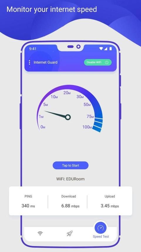 ★ Real-time graphs monitor show Internet Speed and WiFi Speed.