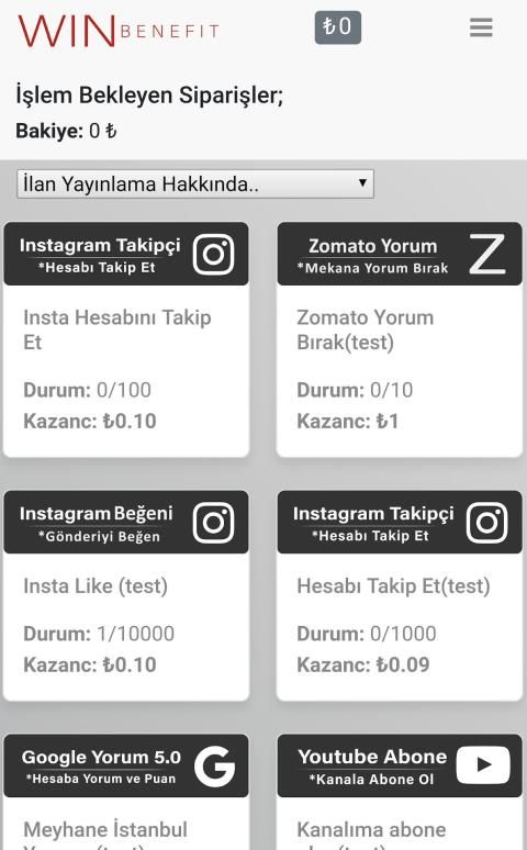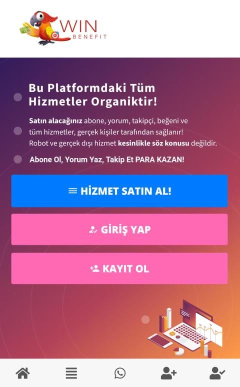 Win Benefit takip ederek, abone olarak, yorum yazarak ve benzeri işlemlerle nakit kazanç sağlayan sosyal platform.