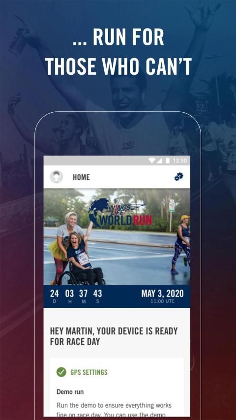 Wings for Life World Run App features:
