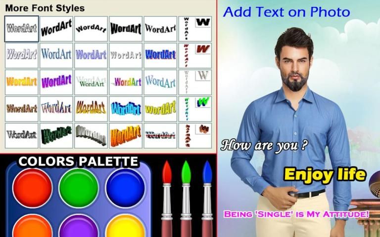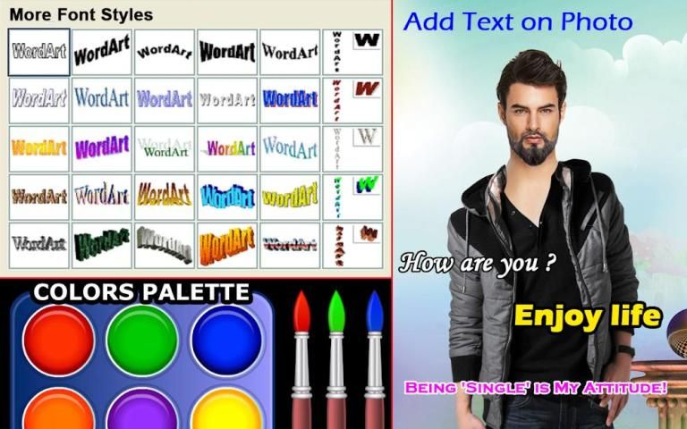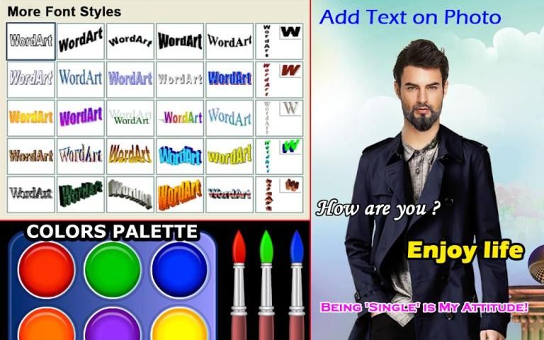 Apply color effects to get soft and sharp pictures in Men Winter Jacket Photo Editor 2018 and Add text using add text on photo option. Select text from the list of fonts. Text size can be increased or decreased and the text color can be changed. Background pictures can be used as a greeting card to convey wishes to your friends.