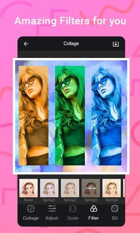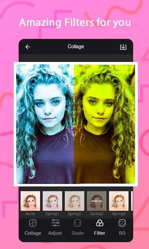 different filters and effects for each grid,add text on collage photo and cool filter effects