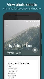 • Muzei integration: Wonderwall and Muzei live wallpaper work together perfectly. If you want to use Muzei for its strength and Wonderwall for its beautiful photography, you can!