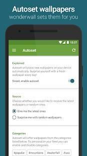 Place new wallpapers on your device without having to do anything. Autoset is fully adjustable to your personal preferences. Be curious to see which wallpaper will be set next time you unlock your device!