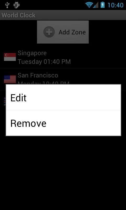 यह कोई विज्ञापन के साथ एक मुक्त खुला स्रोत विश्व घड़ी app है। एप्लिकेशन को या तो किसी भी अनुमतियों का अनुरोध नहीं करता।
