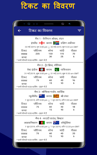 प्रत्येक क्रिकेट मैच के लिए टिकट की कीमत का विवरण