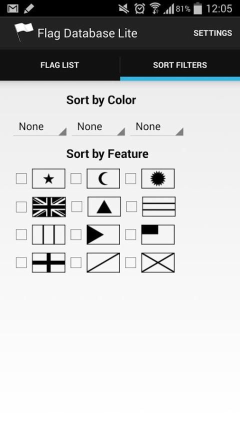 * चिह्नित पहचानकर्ता - जैसे सितारे / crescents / धारियों / संघ जैक के रूप में रंग और सुविधाओं से झंडे छँटाई द्वारा आप दैनिक जीवन में देखने के लिए किसी भी अज्ञात झंडे को पहचानें।