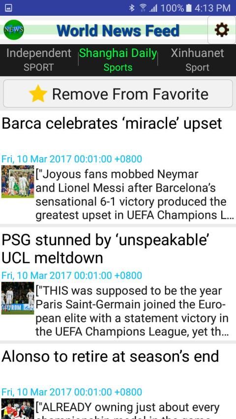 Application "World News" will feed free news from any news or press agency of newspapers from many source of the world by "RSS" feed that provide by any news agency or newspapers website.