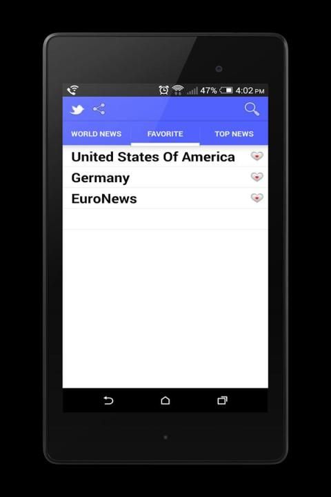 2. पसंदीदा - आप आप अक्सर पढ़ने का आनंद एक समाचार स्रोत खोजने एक बार फिर एक पसंदीदा और हमेशा आसानी से अपने पसंदीदा टैब में स्थित हो जाएगा कि समाचार स्रोत / देश के रूप में चिह्नित करने के लिए स्वतंत्र महसूस हो रहा है.