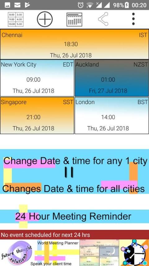 इस आवेदन करने वाले सभी लोगों के ऊपर है कि क्या यह व्यावसायिक हो या निजी रूप से, अन्य समय क्षेत्र में लोगों के साथ बैठकें निर्धारित करने की परवाह किए बिना एक की जरूरत महसूस के लिए उपयुक्त है।