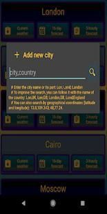 Show you the Weather in every country you choose. just add them from the list of countries.