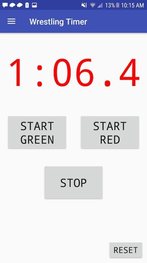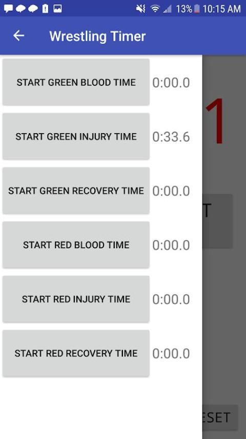 इस एप्लिकेशन को आप टाइमर है कि आप एक कुश्ती मैच के दौरान का ट्रैक रखने की जरूरत के सभी ट्रैक करने के लिए अनुमति देता है। अभी यह, और रक्त, चोट, और वसूली समय घड़ियों दोनों पहलवानों के लिए (कॉलेजिएट कुश्ती के लिए) एक सवारी समय घड़ी है।
