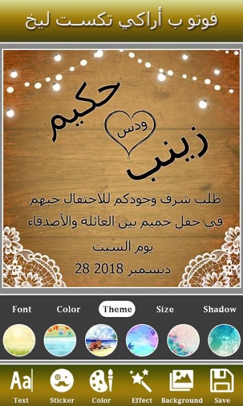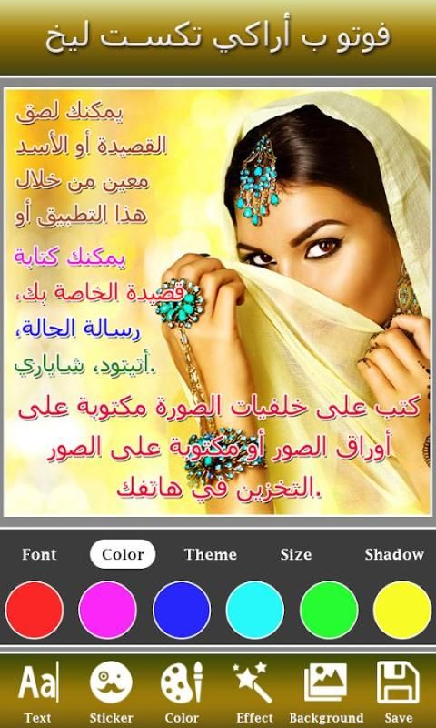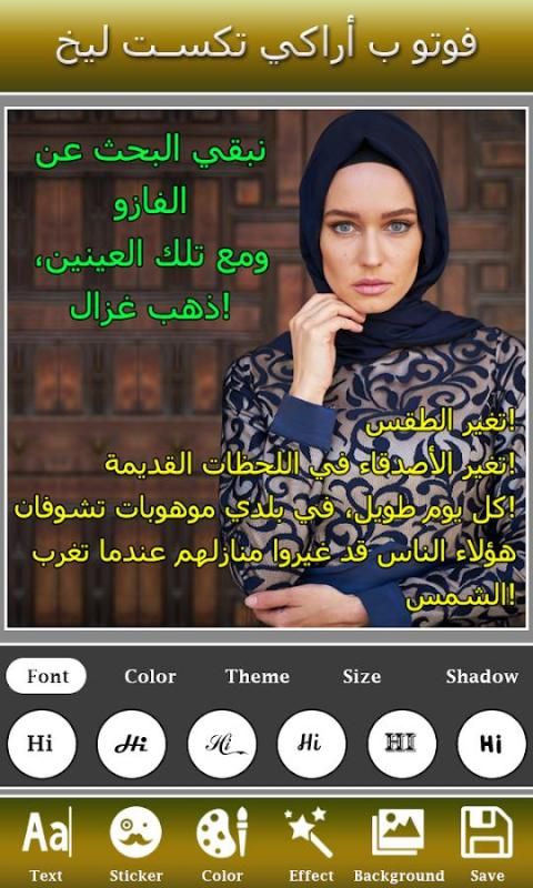 आप चित्र या उद्धरण या विचारों पर पाठ जोड़ने के लिए प्यार करते हैं, तो लिखें फोटो क्षुधा पर अरबी पाठ तस्वीरों पर अरबी पाठ, कलाकृतियों और स्टिकर जोड़ने के लिए सबसे अच्छा अनुप्रयोग है।