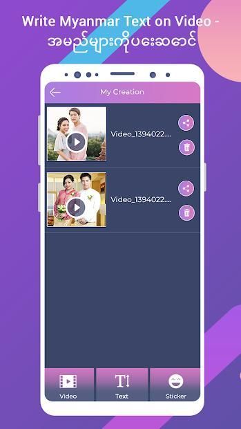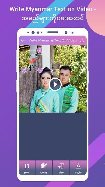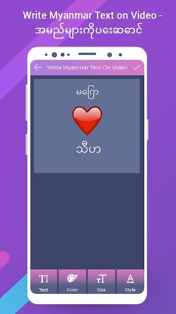 app allow you add romantic Myanmar text and Myanmar poetry on your gallery videos or on given rich collection of HD and stylish Background.this app allows you to write Myanmar text on videos. Write your own shayari, poetry, message, status etc on videos and share them with your friends.