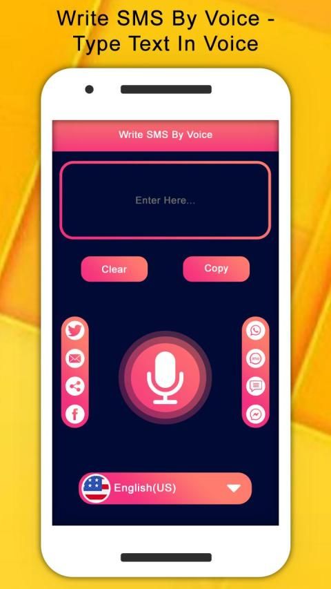 app to write SMS by voice. It has the best way to write SMS with your voice using voice button, just tap on MIC and speak any words, sentences or also paragraph to write it without typing. It is a simple and easy way to write SMS by voice or also it allows users to change languages from the collection.